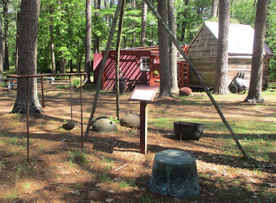 The closer building in the next shot is the wood shop. To the right and farther back is the Spin House, which contains the implements in the above photo, and which is also called the Harrison House, after the family who donated it.