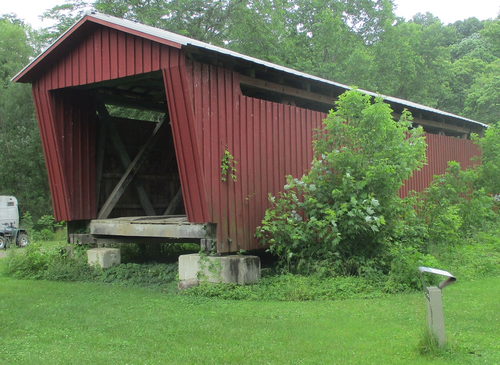 Near the store is the covered bridge, which has been removed from its original location and mounted on concrete blocks.